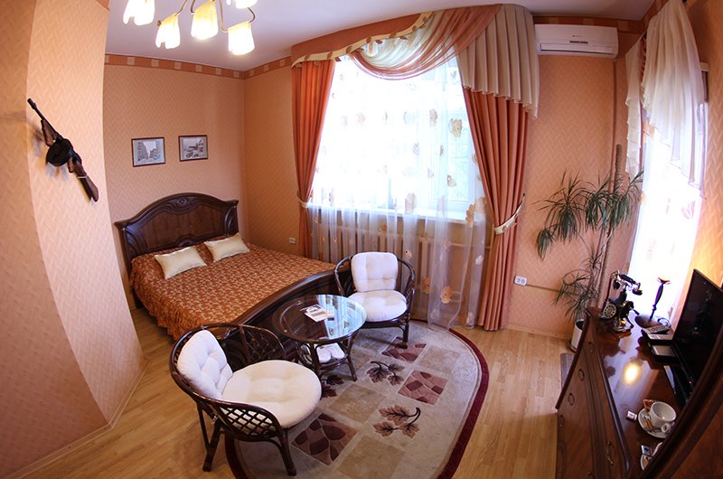 Особенность гостиницы авторский дизайн интерьеров. Все номера оформлены в индивидуальной стилистике - от интерьера Чикаго 30-х годов до французского прованса!